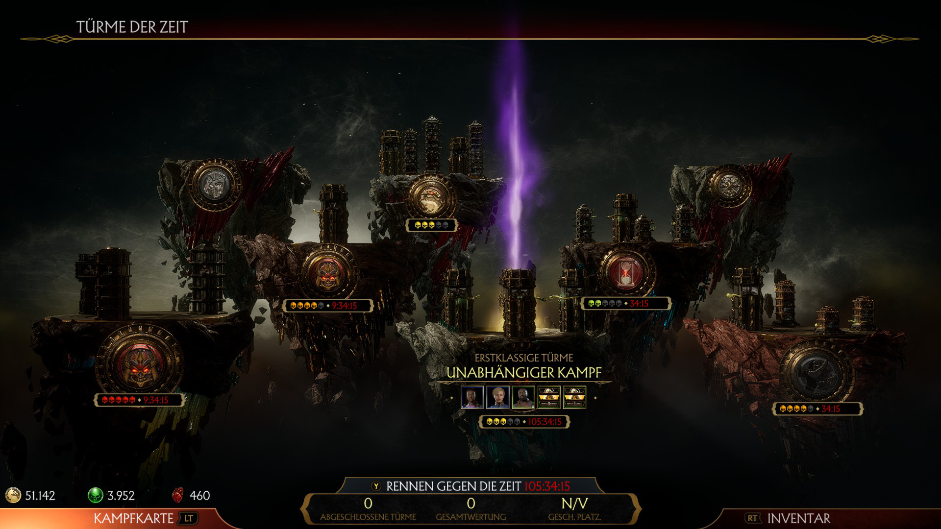 Auf der Insel "Unabhängiger Kampf" dürft ihr euch in 4 Türmen gegen Jacqui, Cassie Cage, Jax und Sonya Blade behaupten. Wie üblich, schaltet ihr Skins und Kampfkarten - Hintergrund / Symbol frei.