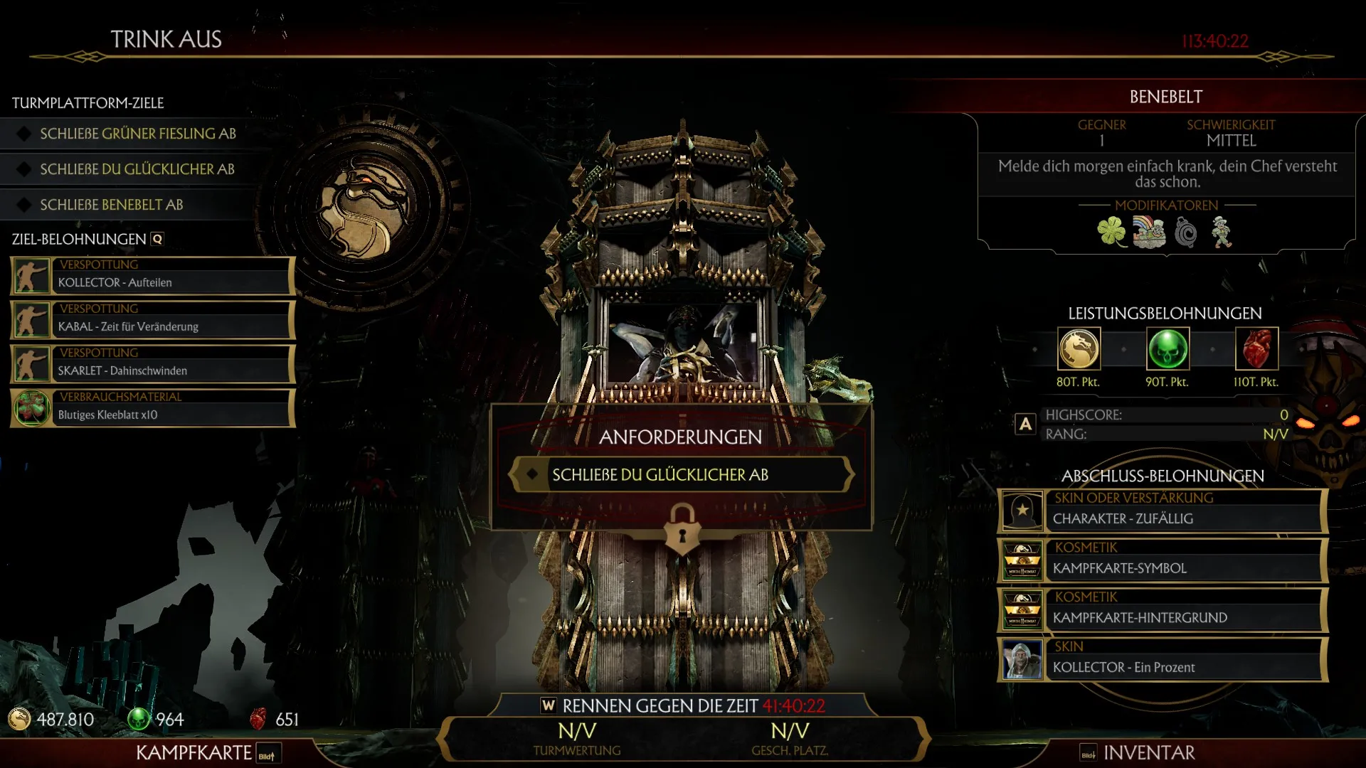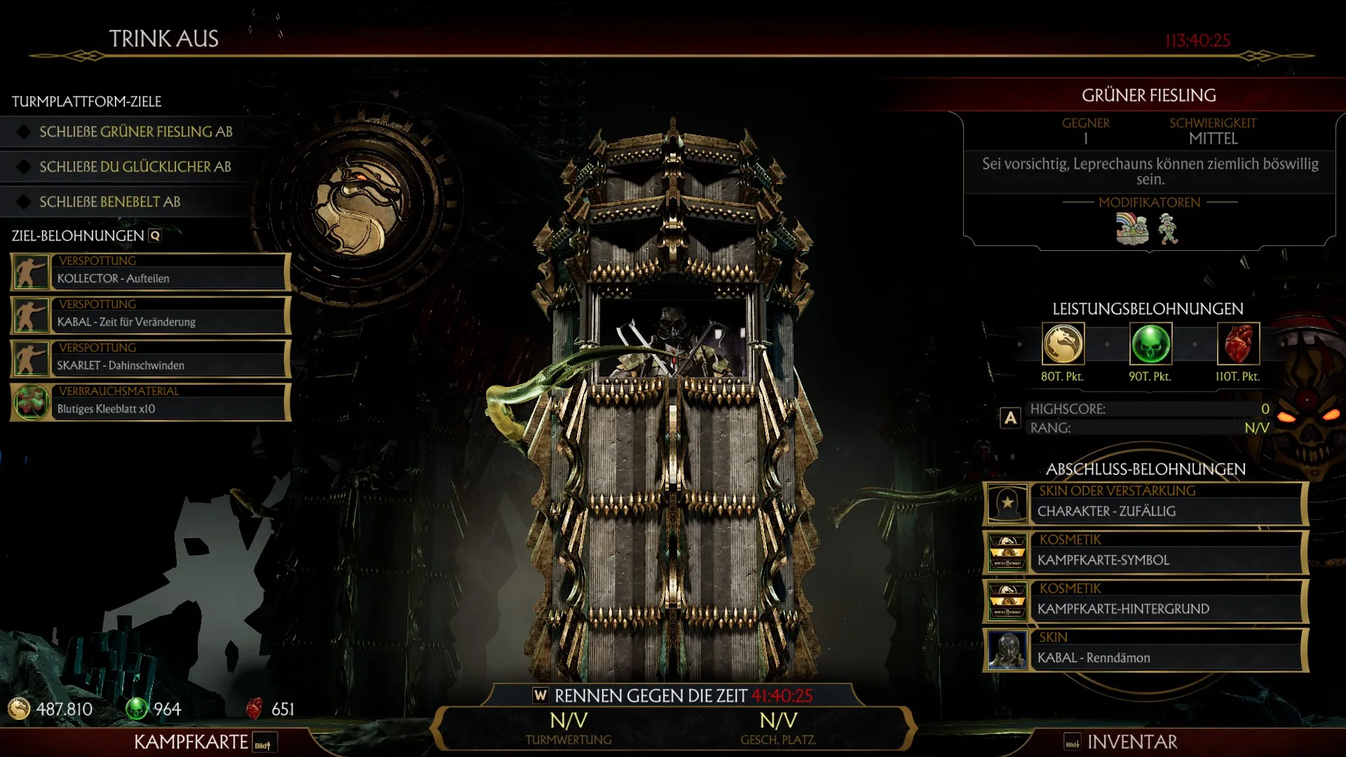 In Mortal Kombat 11 ist ein neues Event in der Türme der Zeit zu finden. Passend zum Feiertag St. Patricks Day welcher am 17. März statt findet, dürft ihr euch bereits jetzt in drei Türmen gegen Kabal, Skarlet und den Kollector behaupten. Wie auch in den vorigen Events, wird euer Kampf durch veränderte Modifikation beeinflusst, wie zb. Kobolde, Regenbogen oder durch Glücksklee.