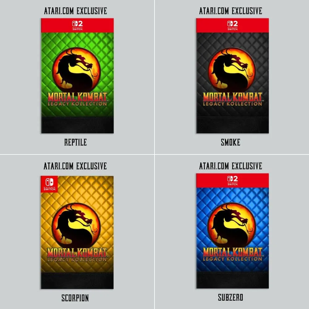 Auf der Atari-Homepage gibt es exklusiv für die Standard-Version der Switch 1 & 2 vier Cover-Einschübe: Scorpion, Smoke, Sub-Zero und Reptile.