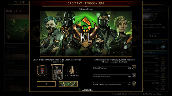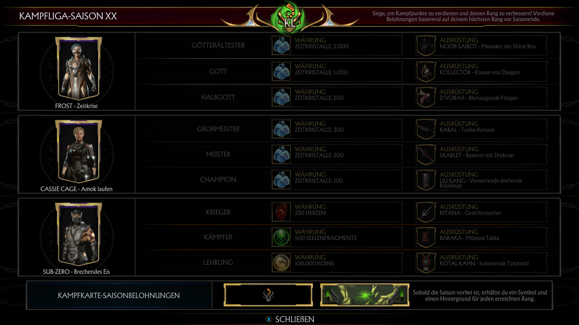 Auch dieses mal handelt es sich um eine Wiederholung der vierten Kombat League von 2020. Nicht desto trotz habt ihr nun wieder die Möglichkeit die Skins die ihr vielleicht verpasst habt zu erspielen.