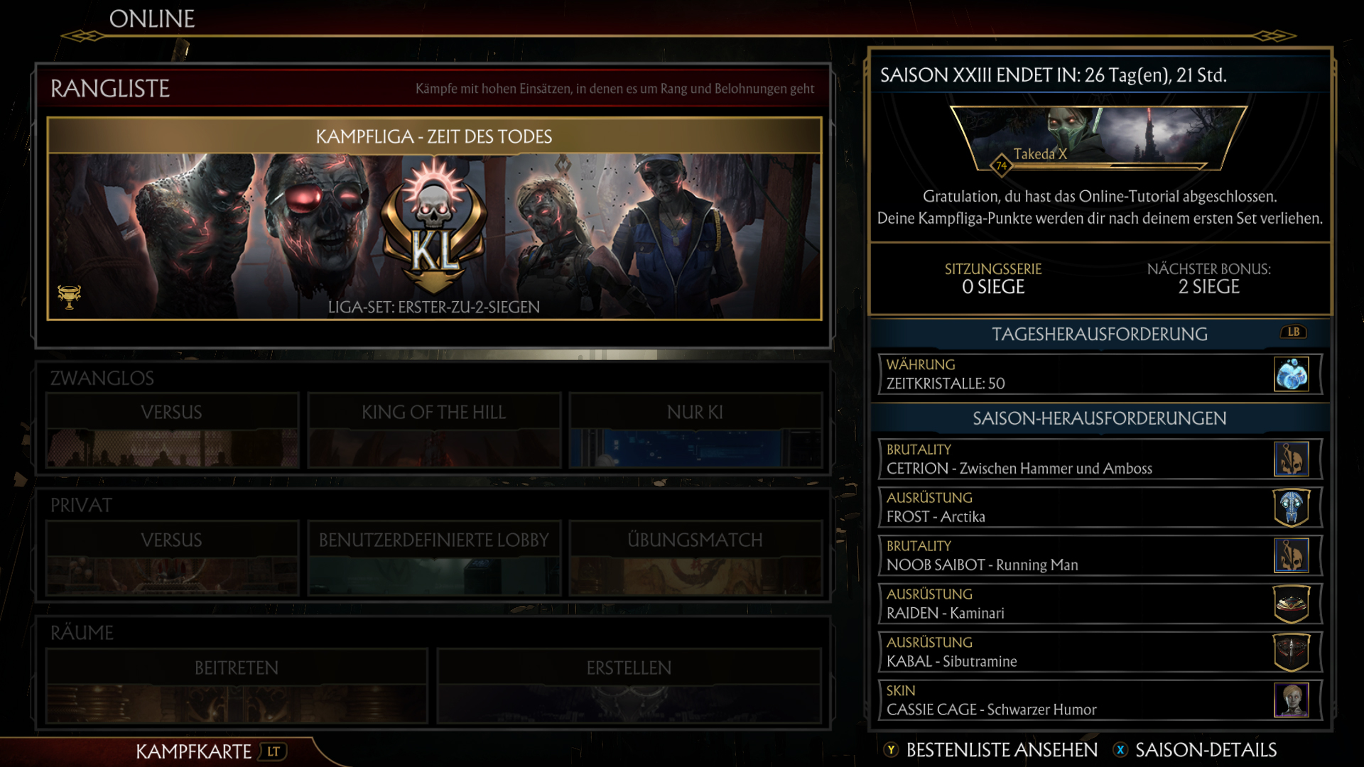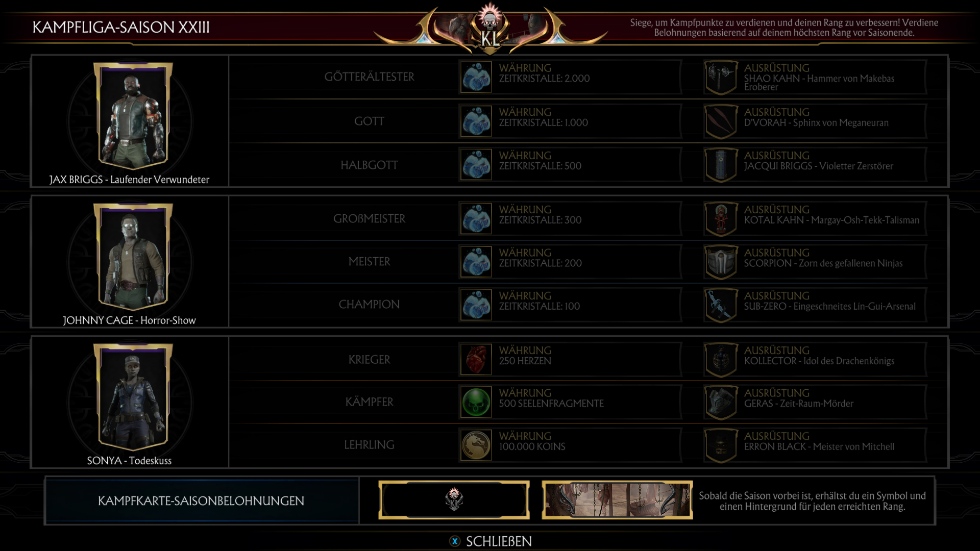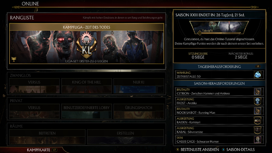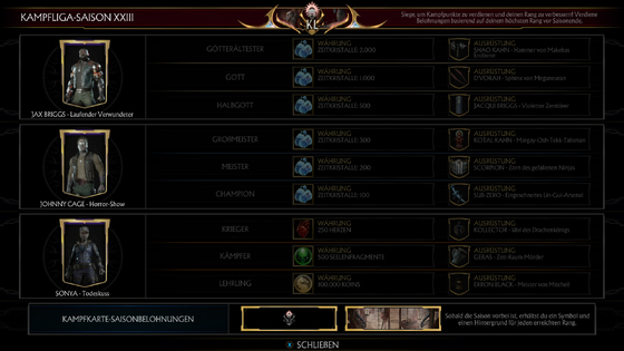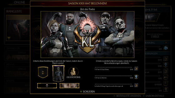 Auch dieses mal handelt es sich um eine Wiederholung der sechsten Kombat League von 2020. Nicht desto trotz habt ihr nun wieder die Möglichkeit die Skins die ihr vielleicht verpasst habt zu erspielen.