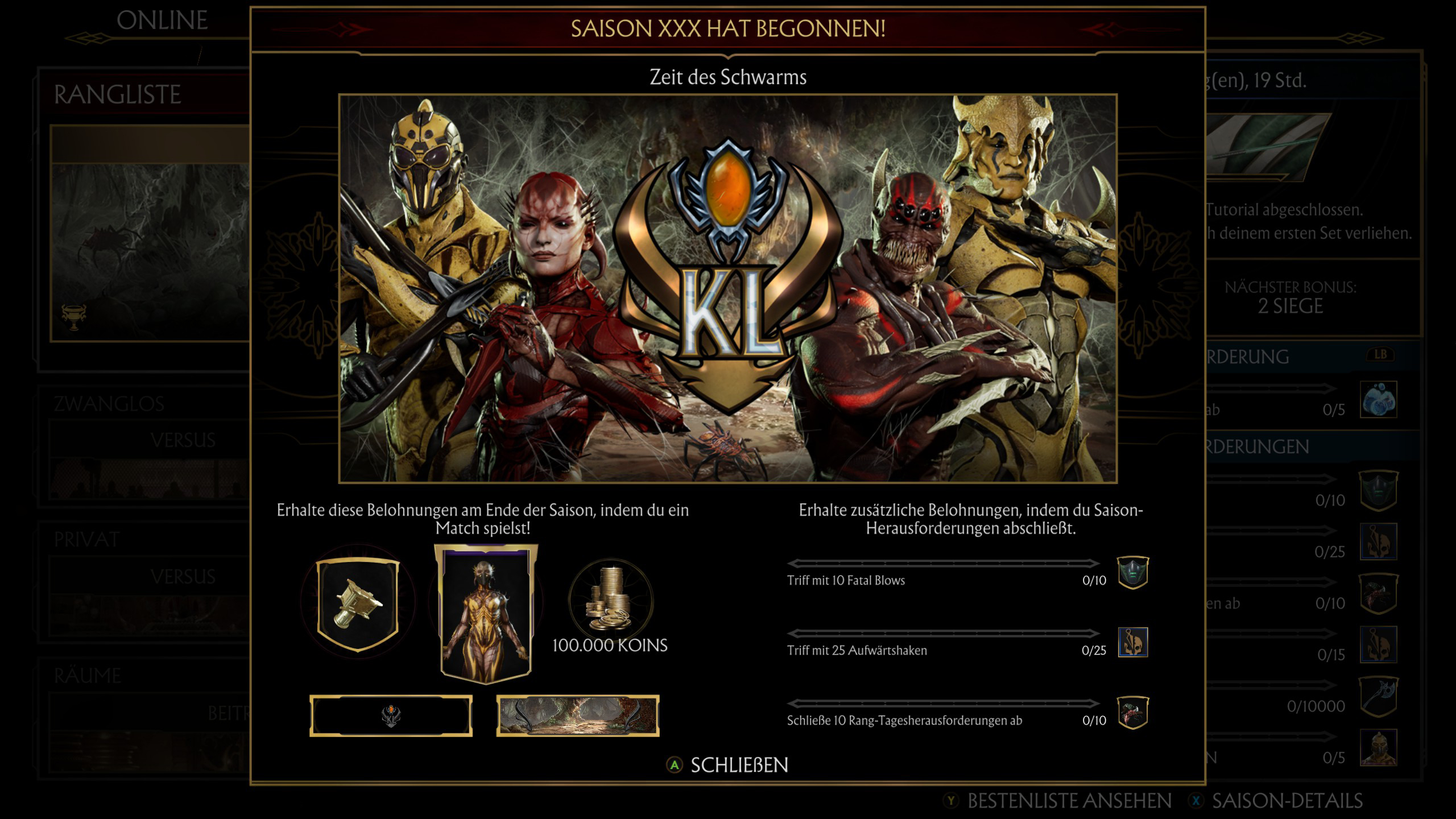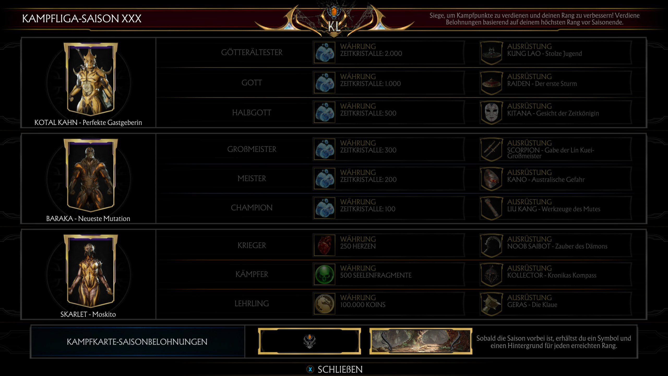 Auch dieses mal handelt es sich um eine Wiederholung der vierzehnte Kombat League von 2020. Nicht desto trotz habt ihr nun wieder die Möglichkeit die Skins die ihr vielleicht verpasst habt zu erspielen.