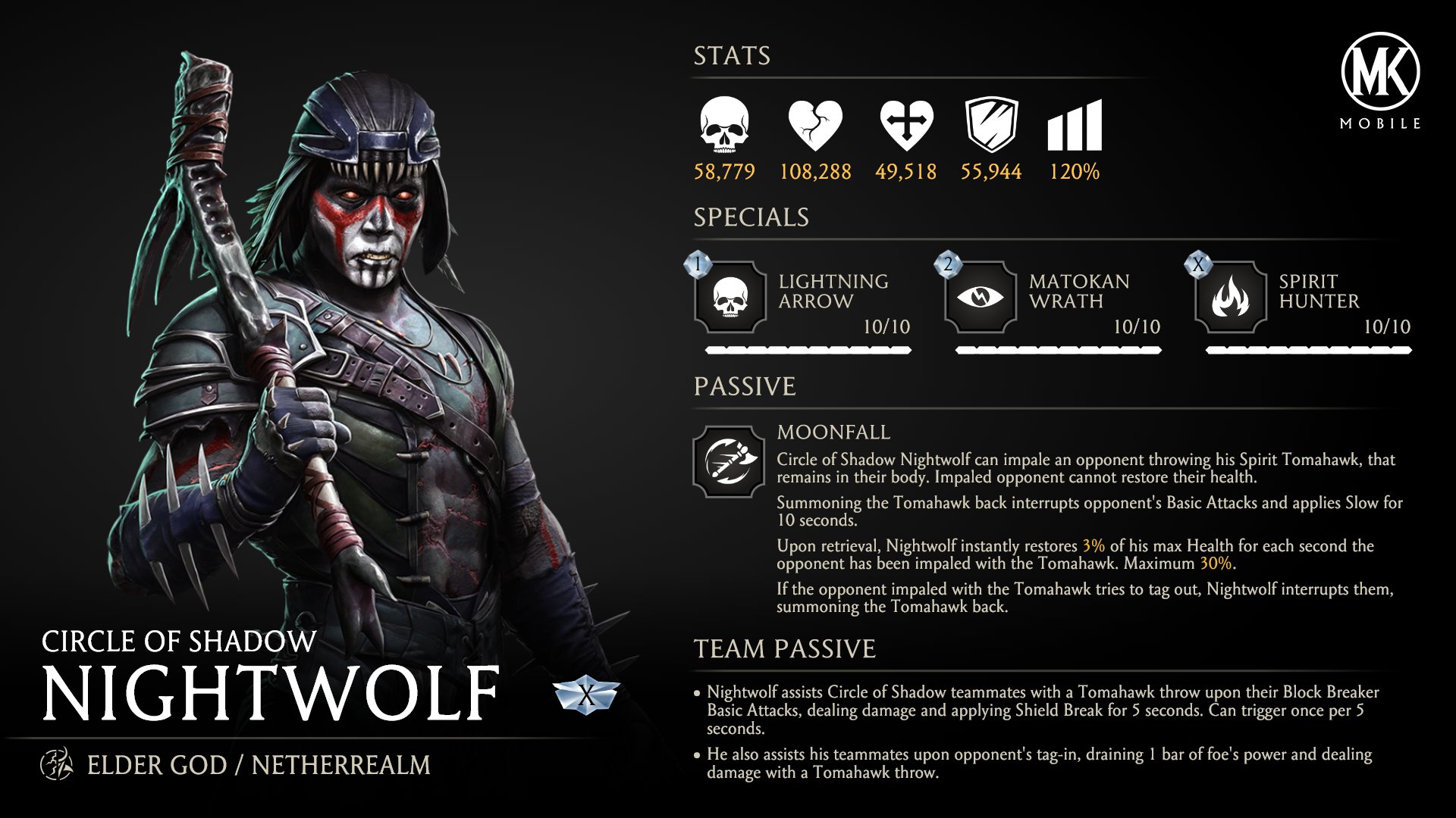 MKMobile Nightwolf Circle of Shadow Stats