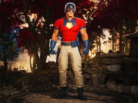 - Peacemaker wird in der Fernsehserie von WWE-Superstar John Cena dargestellt, ebenso in MK1 (Aussehen und Stimme).