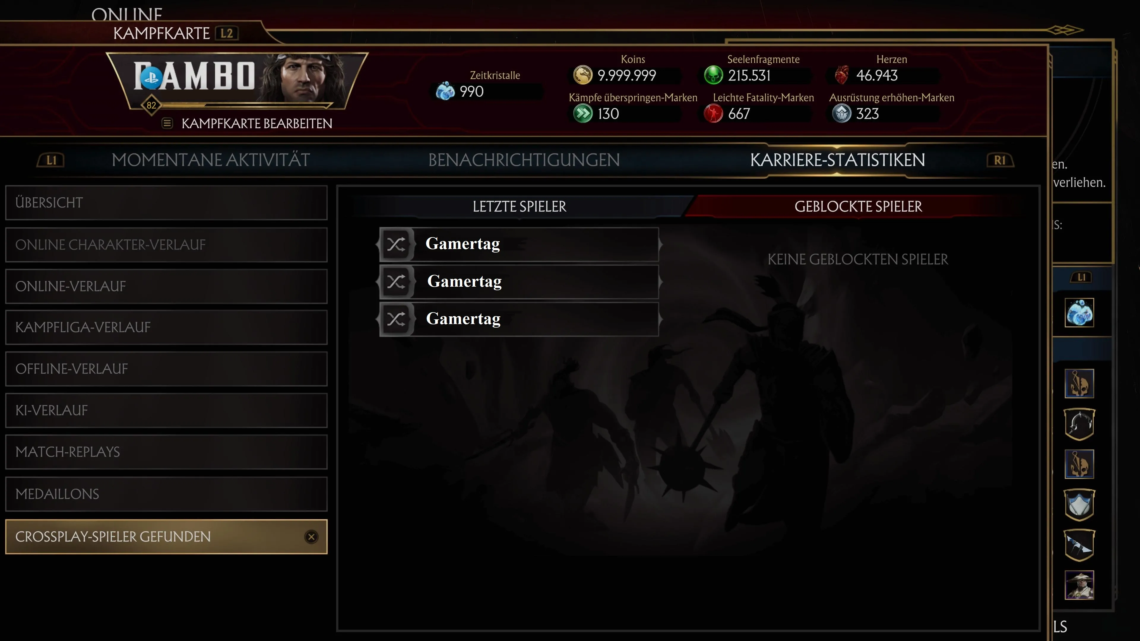 Krossplay, offiziell als Crossplay, oder auch Cross-Platform-Play, zu deutsch plattformübergreifendes Spielen beschreibt die technische Möglichkeit, Mortal Kombat mit und gegen andere Spieler einer anderen Plattform zu spielen, P1 ist auf Xbox gegen P2 auf Playstation zum Beispiel.