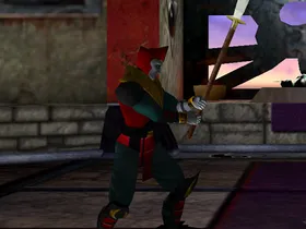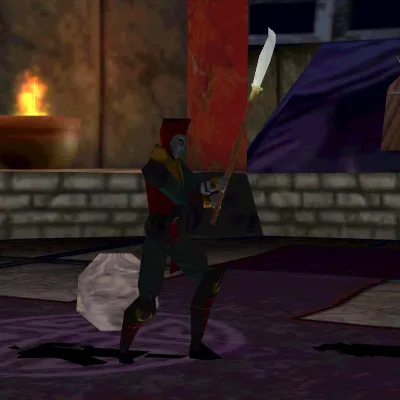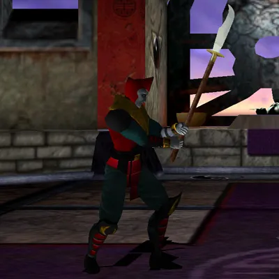 Der Stab wird beidhändig geführt und dient Shinnok sowohl zur Kanalisation dunkler Energien als auch für präzise Stiche und Schläge.