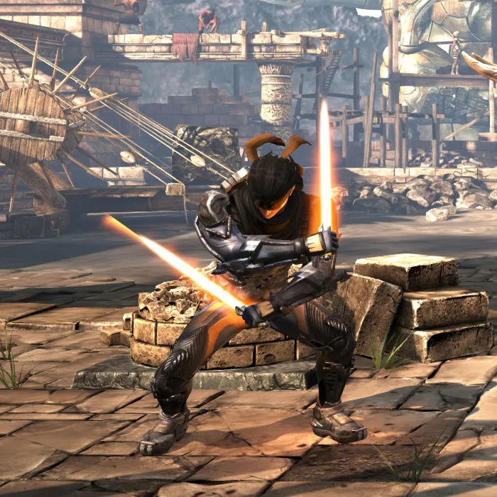 In Mortal Kombat X nutzt Takeda Takahashi Double Pulse Blades in der Variation Ronin.
