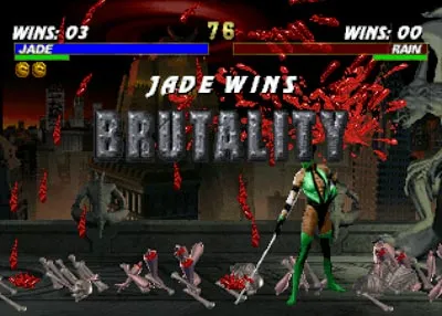 Es ist nicht verwunderlich wenn mehrere Köpfe oder Hände nach der Explosion am Bildschirm herumliegen. Der Brutality wurde auch in Mortal Kombat: Trilogy mit übernommen und tauchte erst wieder in Mortal Kombat: Shaolin Monks in etwas abgeänderter Variante auf.