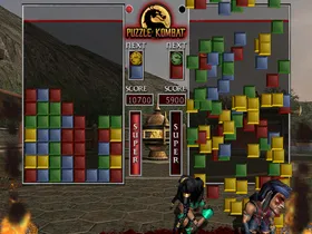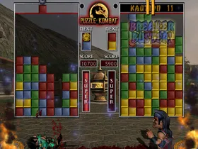 In Puzzle Kombat muss man Bausteine nach Farben sortieren um Punkte zu bekommen, damit der gegnerische Spieler mehr Steine bekommt. Man kann aus 8 verschiedenen Kämpfer wählen, welche eine besondere Fähigkeit besitzt, um im letzten Moment alle seine Steine farblich zu sortieren oder sie zum explodieren zu bringen. Hat man das Match gewonnen, wird der Feind mittels Fatality vernichtet.