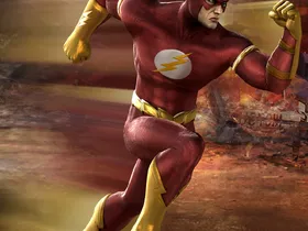 Polizei Chemiker Barry Allen bekam in einem Labor Unfall aussergewöhnliche Geschwindigkeit, er legte ein Karminrotes Kostüm an und wurde zu Flash. Im Stande an der Grenze der Lichtgeschwindigkeit zu laufen, kann Flash auch die meisten Objekte penetrieren und ist dafür bekannt in komplett andere Dimensionen zu schlüpfen.
