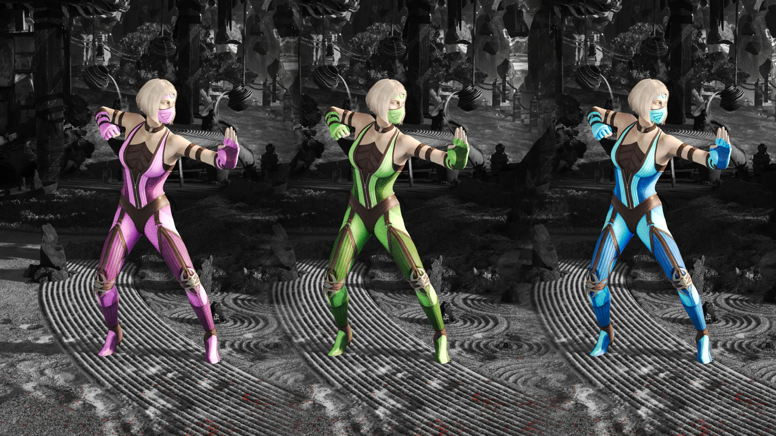 - Nutzt in Mortal Kombat: Trilogy die Fähigkeiten von Kitana, Jade oder Mileena. (Palette-Swap)