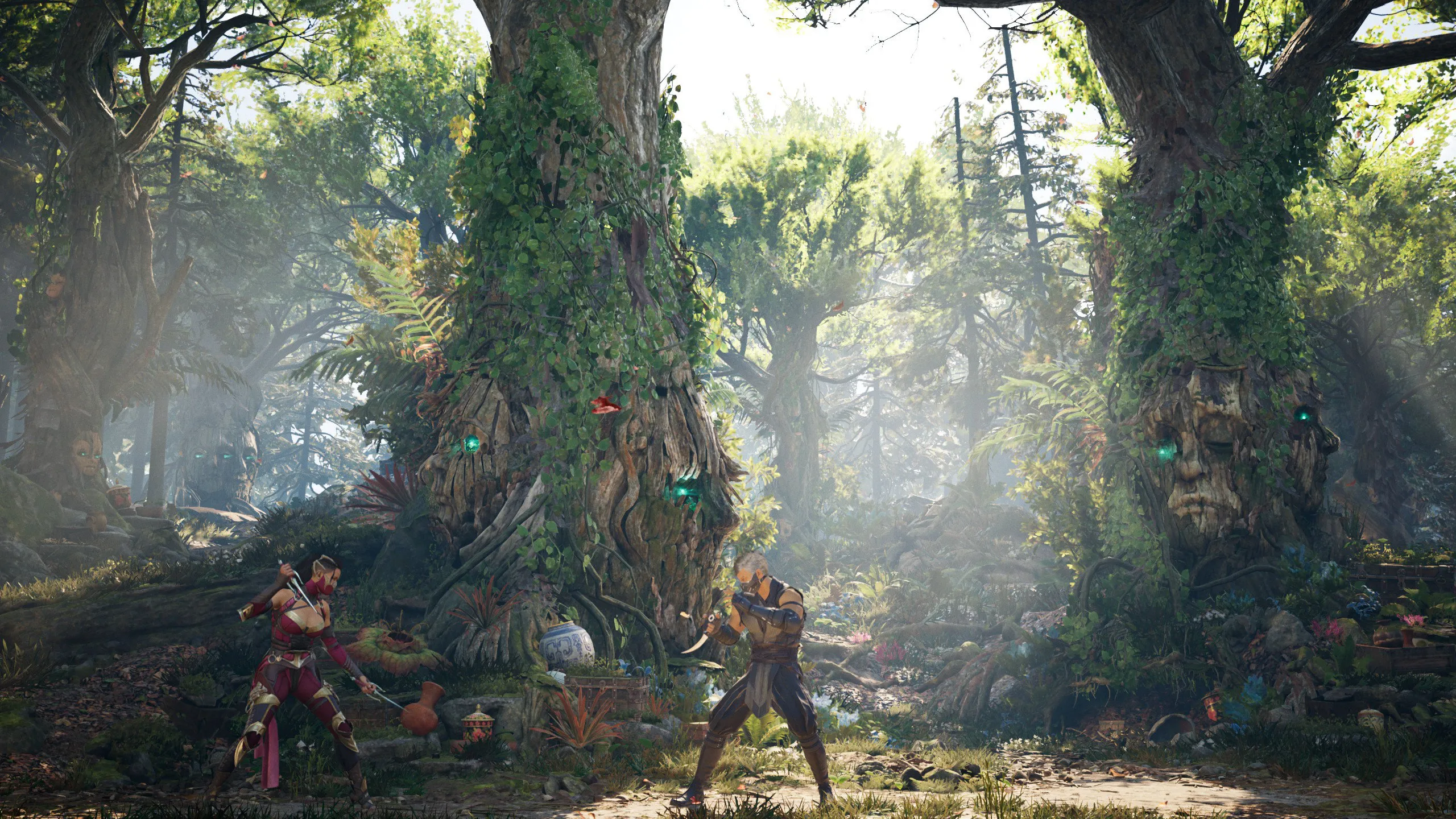 Der Kampf wird von zwei geheimen Kämpfern beobachtet; Smoke und Jade. Je einer der zwei taucht ab und zu hinter dem Baum in der Mitte der Arena auf und verschwindet sofort wieder..