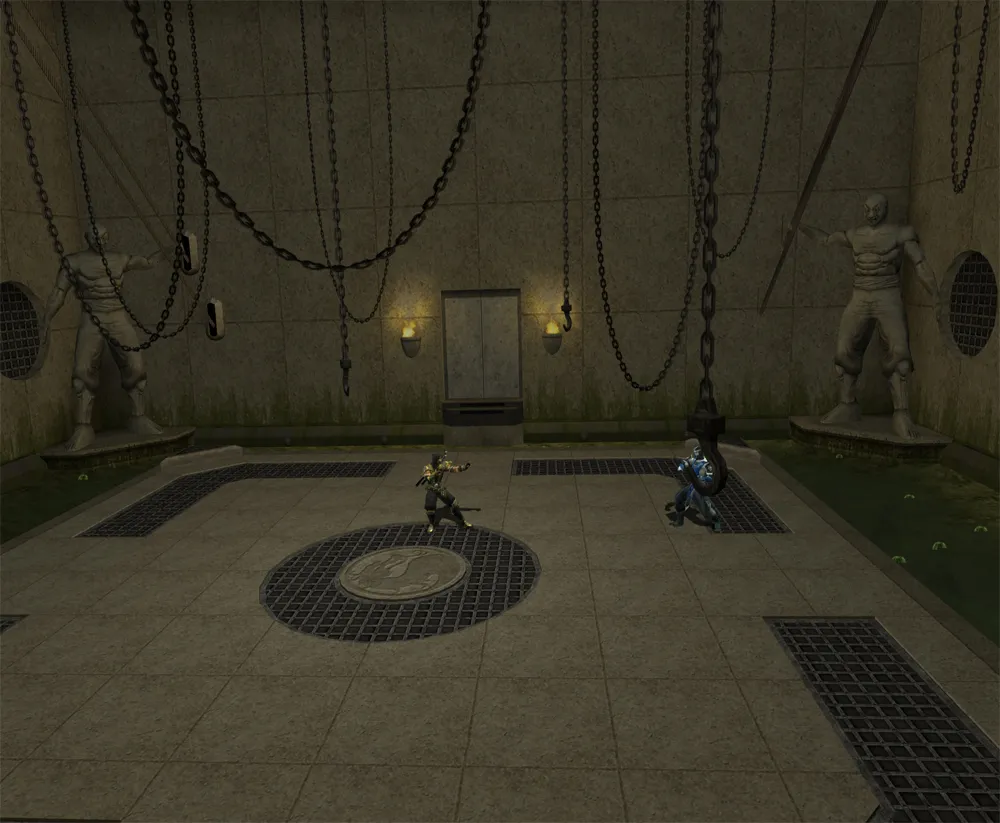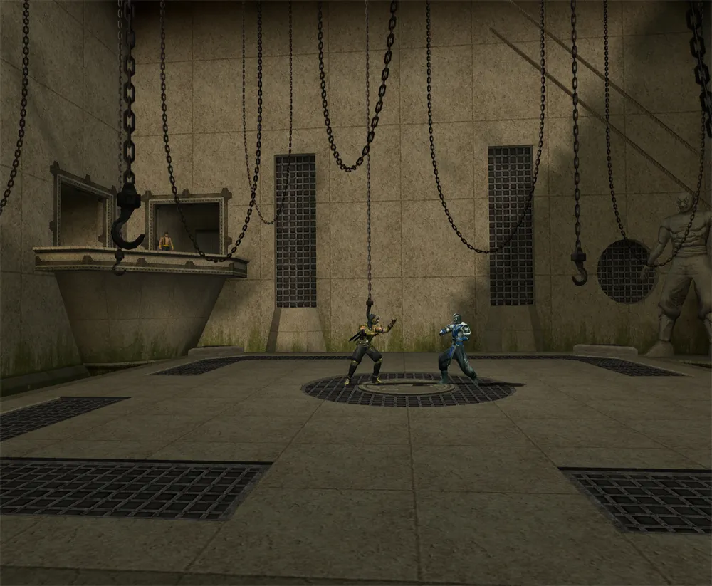 Die Stage ist quadratisch aufgebaut (wie The Pit für Mortal Kombat: Deception). Shang Tsung beobachtet den Kampf in seinem MK2 - Outfit, oben in einer Ecke.