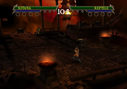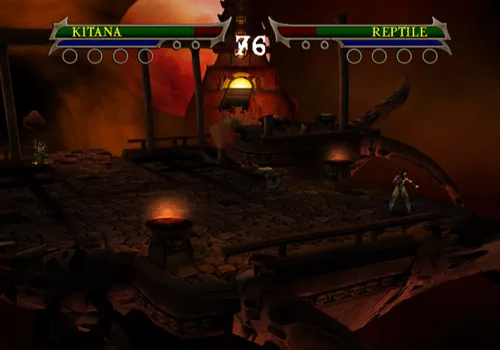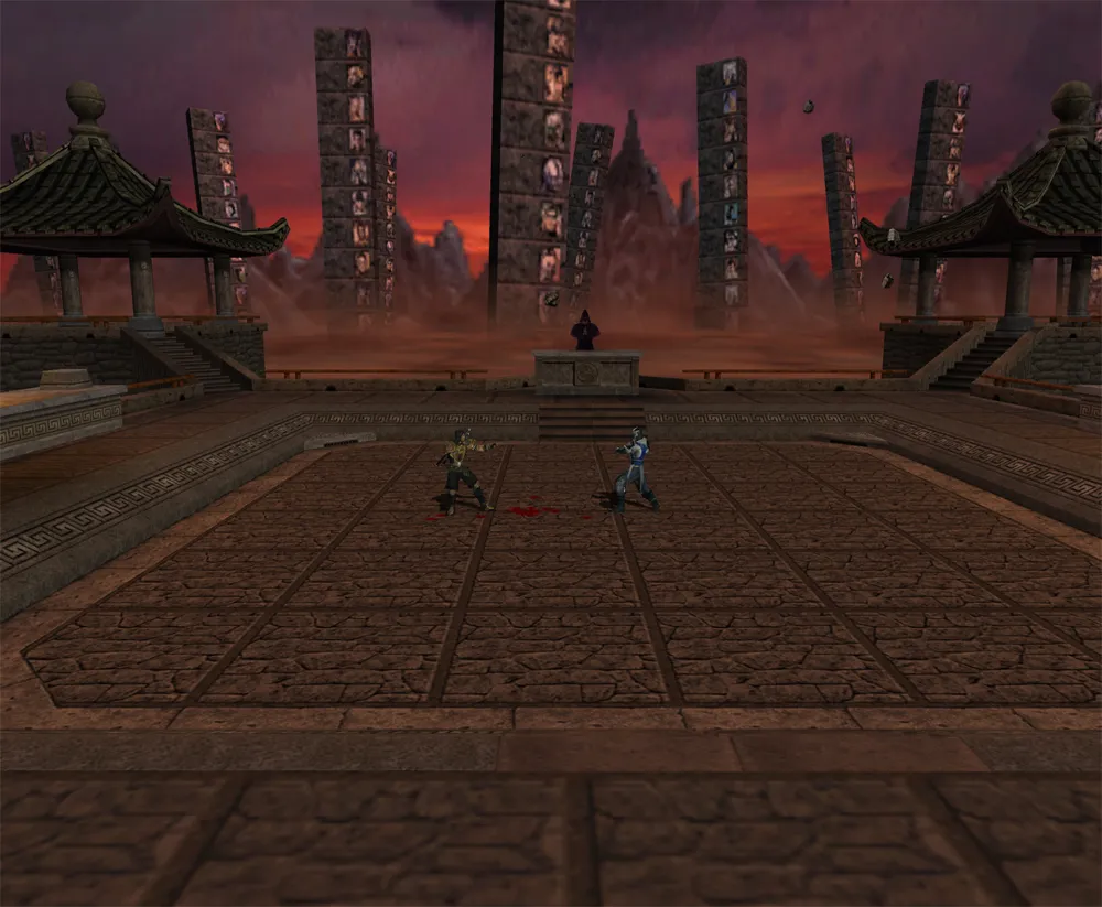 Liu Kang und Kung Lao betreten den ersten Teil von Outworld und müssen sich durch Gegnerwellen in verschiedenen Etagen durchkämpfen. Diese Arena gibt es auch als VS - Stage, um her fliegende Felsbrocken machen den Kampf noch gefährlicher.