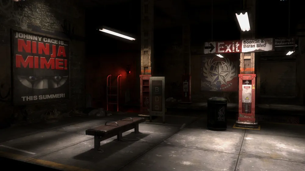 Die klassische U-Bahn Station mit Stage-Fatality bestückt mit einigen Plakaten wie die der U.S. Special Forces. Im Story-Mode kämpft man als Stryker gegen einige Kämpfer von Outworld in The Subway.