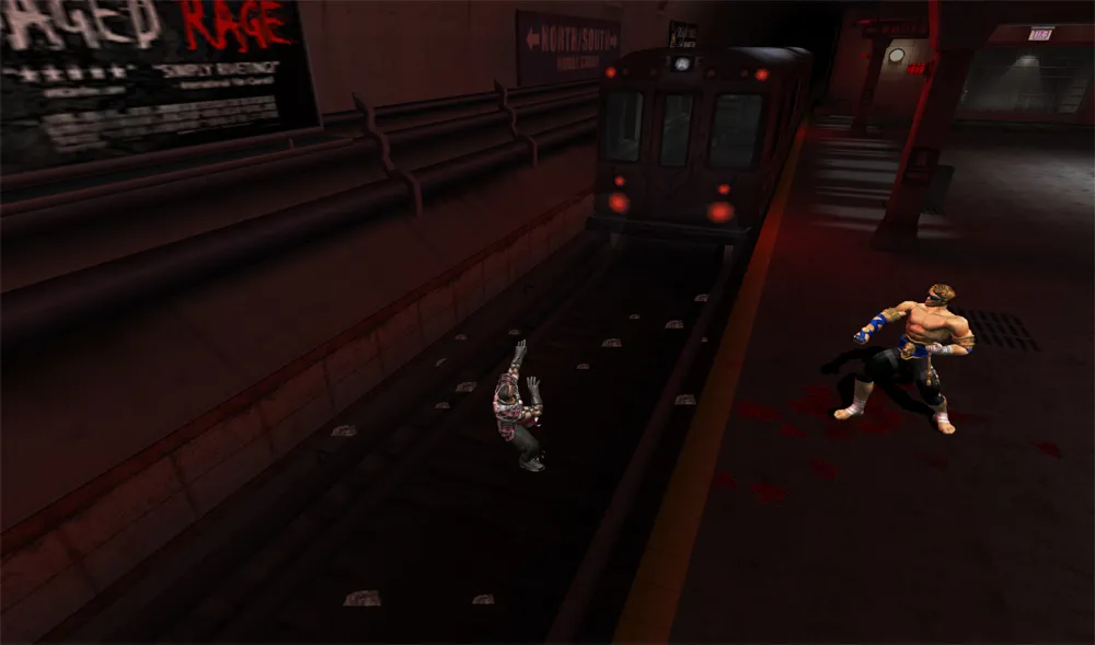 Mit einem gezielten Uppercut landet man in der Arena The Street oder per Fatality auf den hinteren Gleisen wo man von einer U-Bahn überfahren wird.