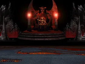Auf der rechten Seite schaut ein "Auge" durch ein Loch. Unter dieser Arena befindet sich Scorpions Lair.