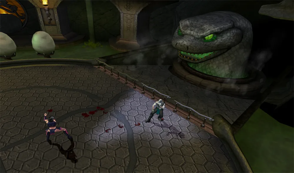 In Mortal Kombat: Armageddon besitzt die Arena zwei Ebenen. Es war geplant die Schlange mit einzubauen, wurde aber im fertigen Spiel durch eine Statue ersetzt. In der unteren Ebene befinden sich am Rand der Arena Schlangeneier. Werden diese zerstört erleidet man durch die Säure Schaden.