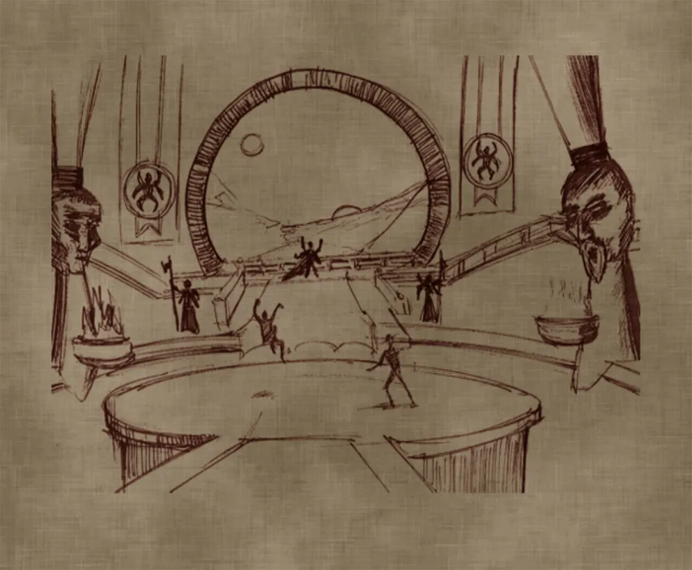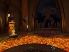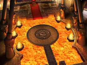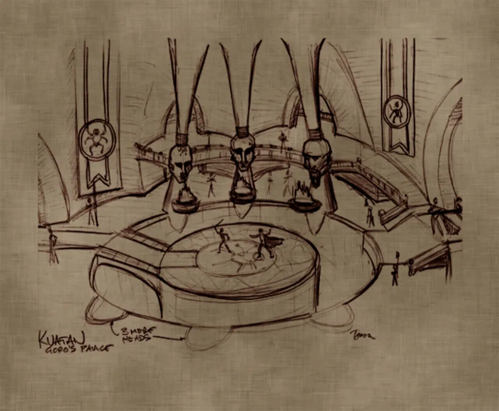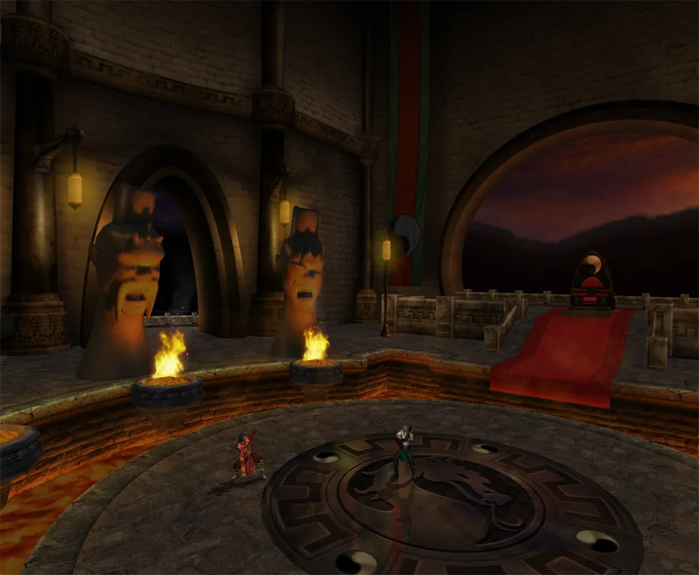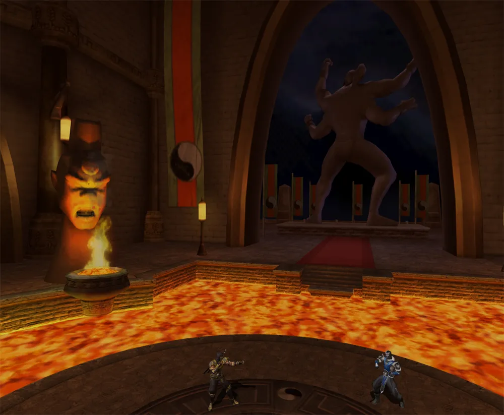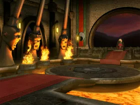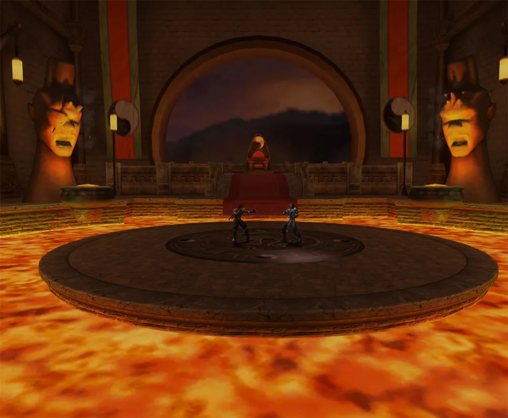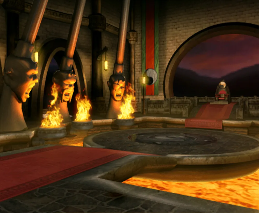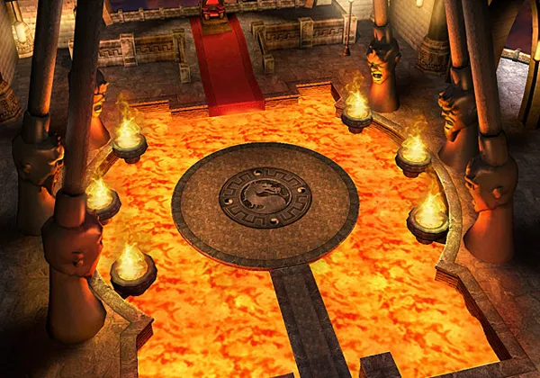 Dieser Palast gehört dem Volk der Shokan. Auf der Seite sind die Köpfe der sechs grössten Herrscher der Shokan nachgebildet. Nach dem scheinbaren Tod von Goro wurde sein Leichnam in einem Sarg in der Lava geschmolzen. Selbst Kitana verabschiedete sich von ihren verbündeten.