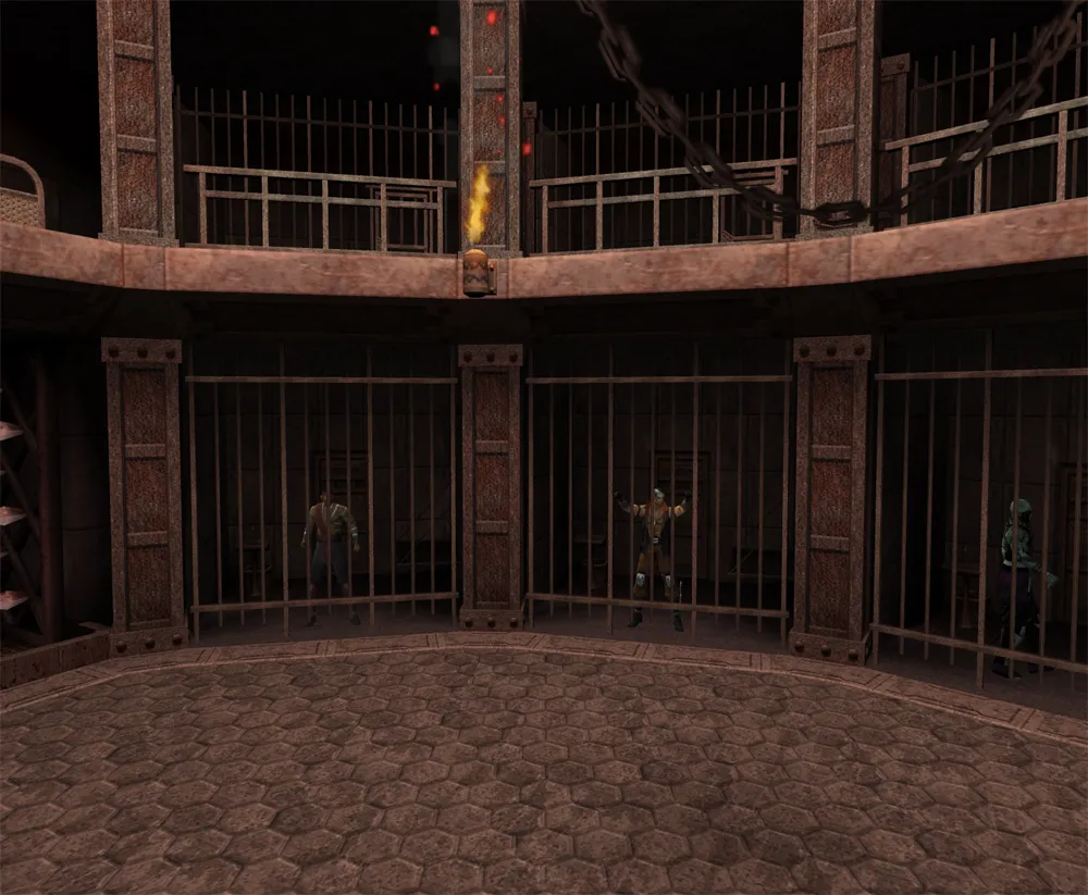 Das dunkle Gefängnis liegt tief unter Shang Tsung`s Palastgelände. Die Gefangenen waren keine Verbrecher, sondern lediglich die nächsten Opfer. Wer Glück hatte, erlitt zur Belustigung der Wachen in der Stachelquetsche einen schnellen Tod.