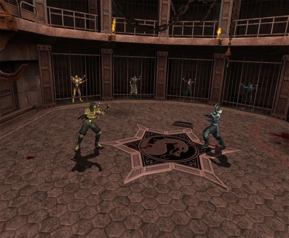 Zu beginn vom Kampf befindet man sich auf der ersten Etage. Mit einen Schlag befördert man den Gegner hinunter zu den Gefangenen, wo sich auch die Death Trap befindet. Kommt man dem Gitter zu nahe, ergreifen die Gefangenen nach dem Kämpfer.