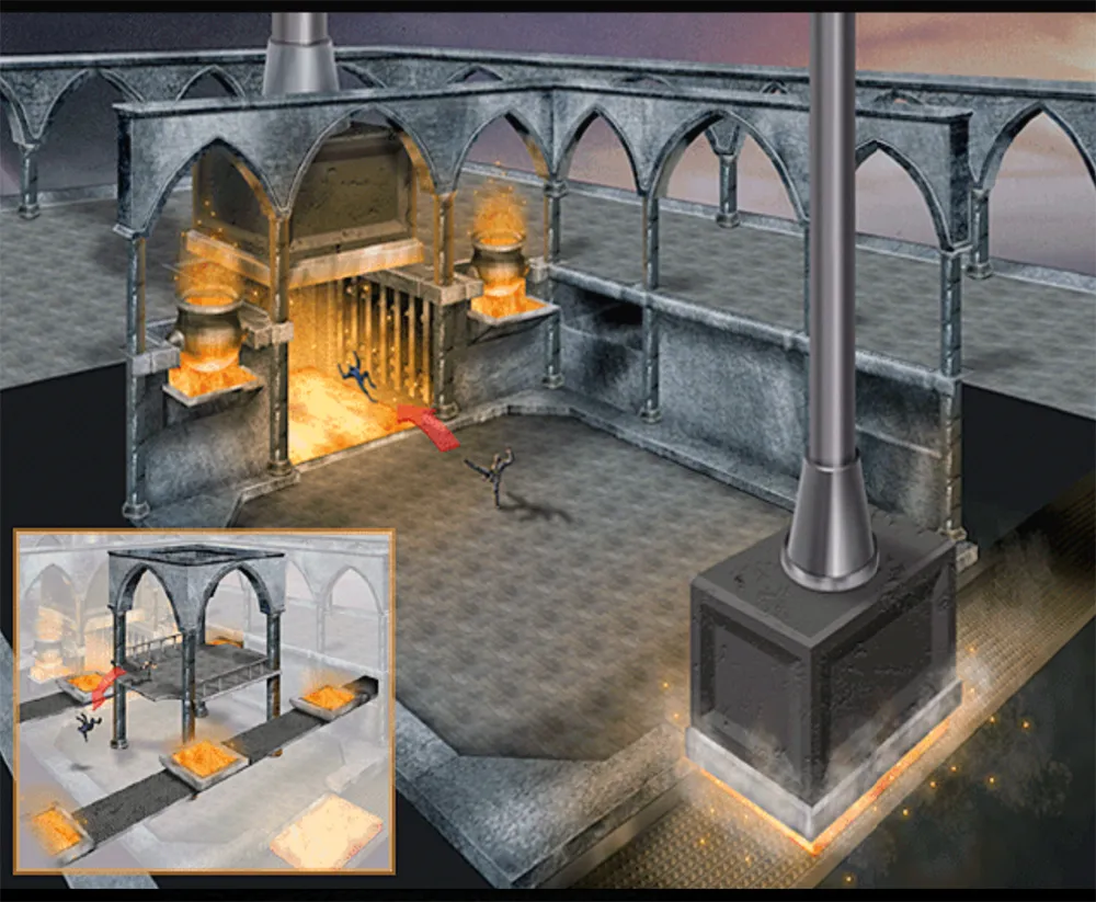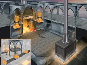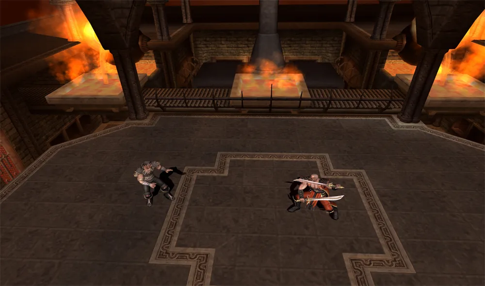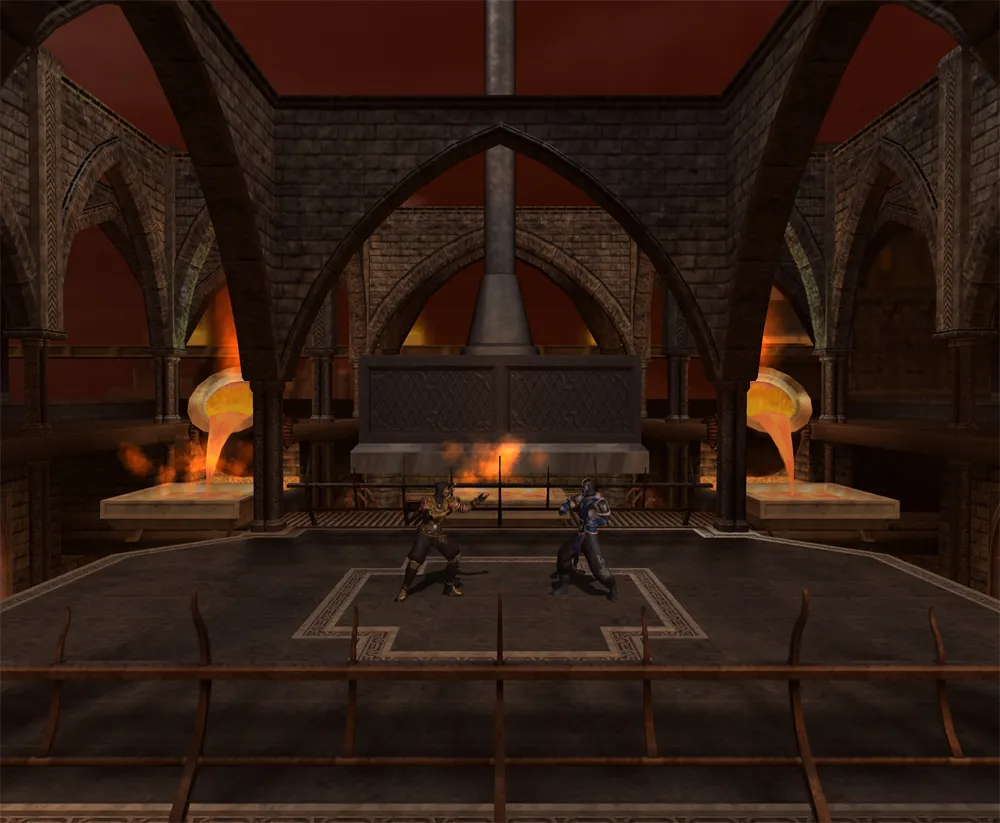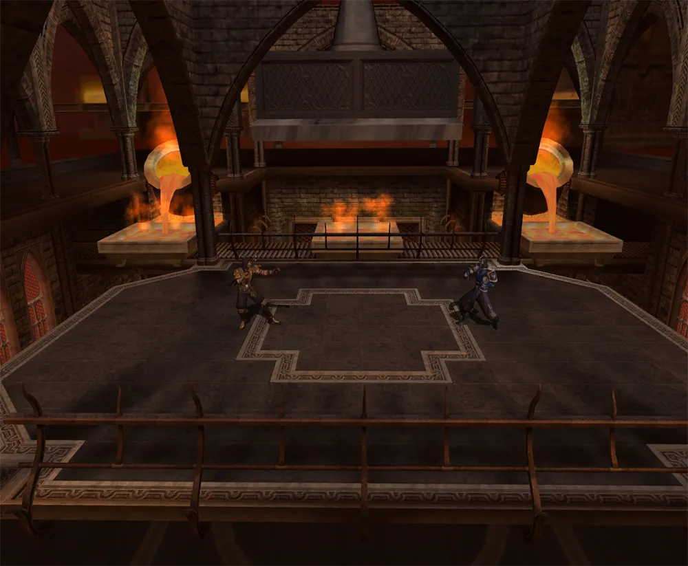 In dieser Arena beginnt man auf der Oberseite einer kleinen Metallschmiede. Den Gegner kann man entweder links oder rechts von der Plattform runter schmeissen. In der unteren Etage der Arena, ist die Metallschmiede. Der Feind kann an beiden Seiten in die Metallpressmaschine befördern. Im verzweifelten Versuch vom Gegner noch rechtzeitig zu fliehen, wird er zu Asche zerquetscht.