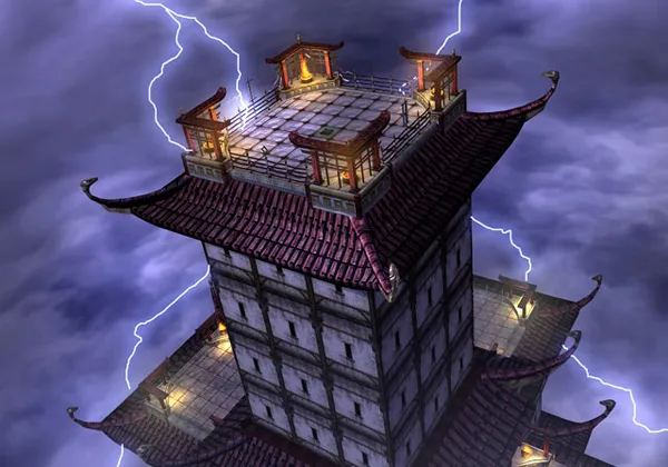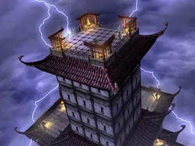 Der Himmelstempel befindet sich auf der Erde. Das Gebäude dient Lord Raiden als Ort der Meditation. Sein mächtiger War Hammer liegt auf dem Dach und dient als Blitzableiter. Der Himmelstempel ist 508 Meter hoch; Ein tödlicher Sturz!!!