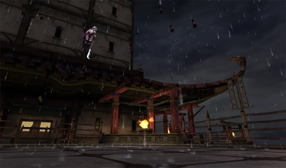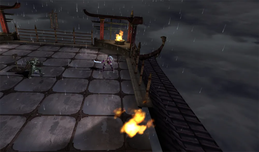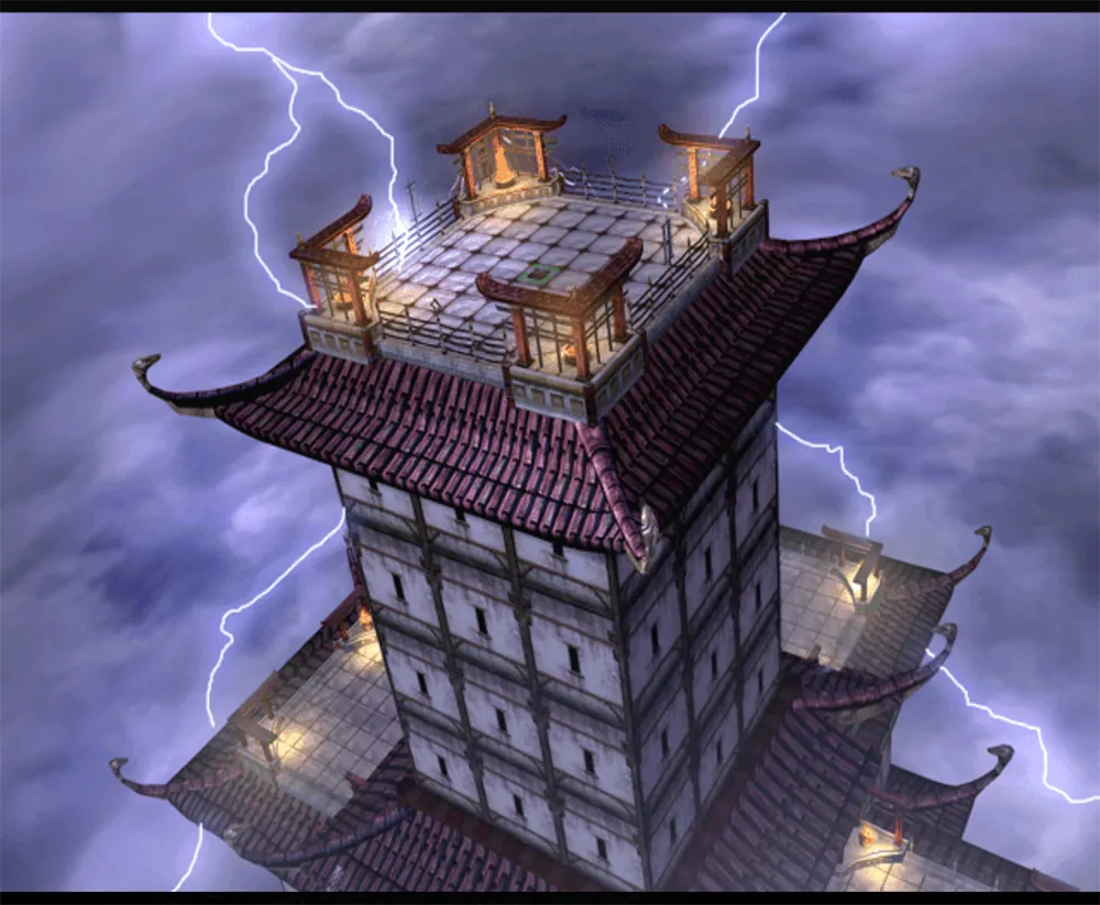 Man beginnt auf der höchsten Etage, den Gegner kann man auf allen vier Seiten durch einen starken Kick auf die nächste Etage werfen. Zudem befindet sich auf dieser Etage der Warhammer. Auf der letzten Etage befindet sich der Deathtrap, indem der Gegner vom Skytempel fällt.