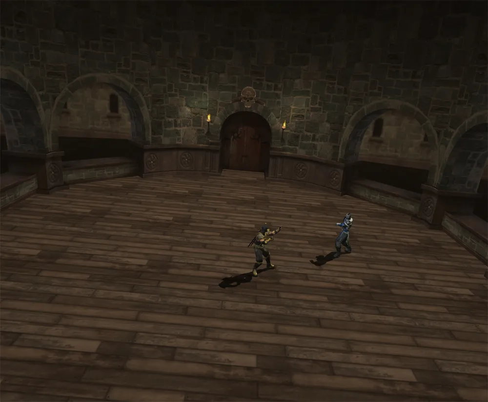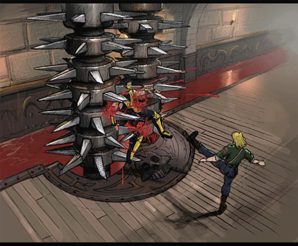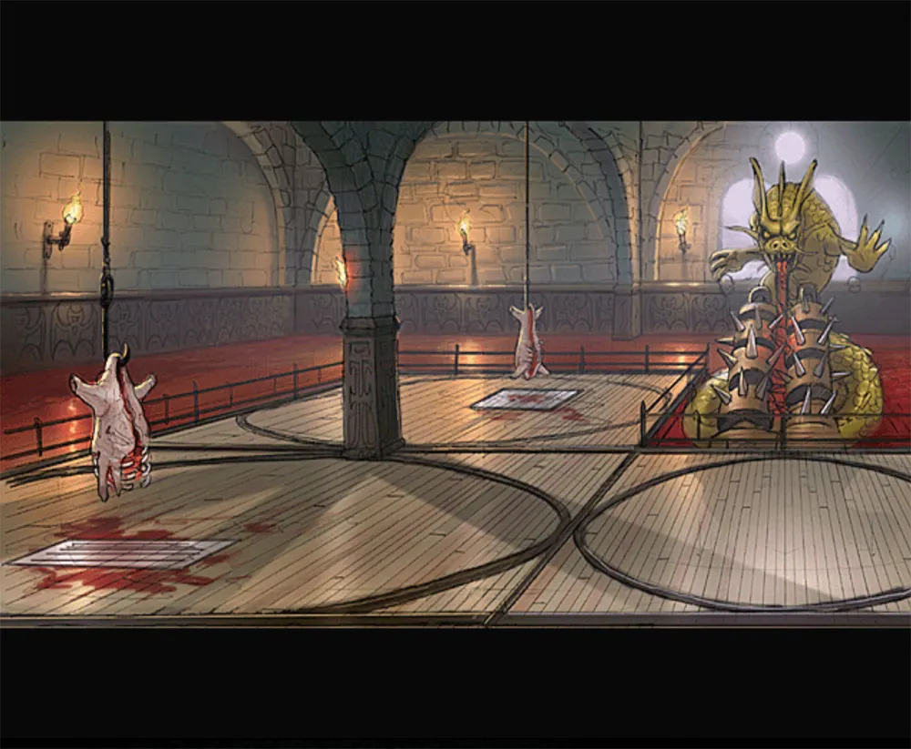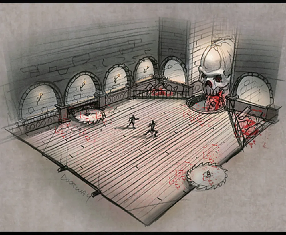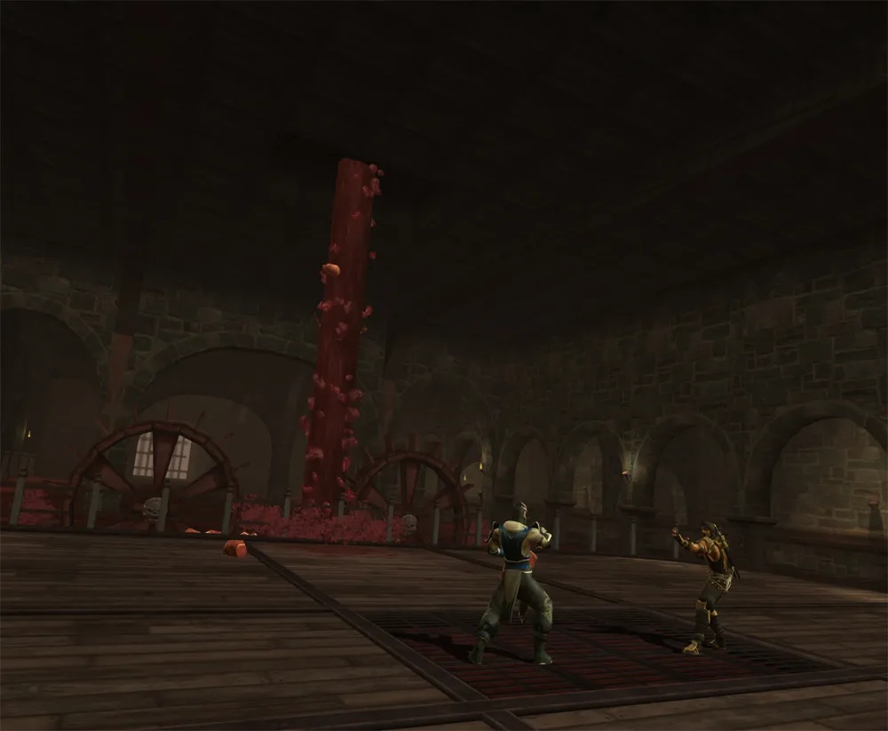 Die Arena besteht aus zwei Etagen. Man beginnt auf der ersten Etage und durch einen Uppercut bricht der Gegner durch die Boden und gelangt somit in die zweite Etage. Diese beinhaltet einen Deathtrap (Fleischwolf), sowie eine Stage-Weapon, die Cleaver.
