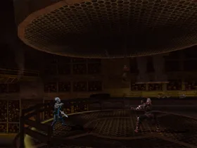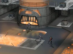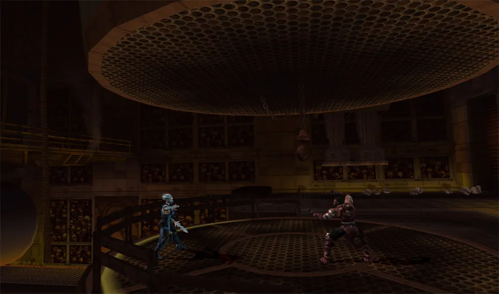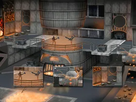 Fire Hell beginnt auf einer kleinen Plattform, von welcher man auf die zweite Etage gelangen kann.