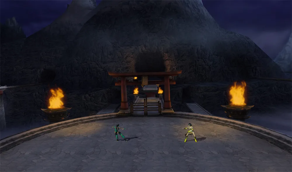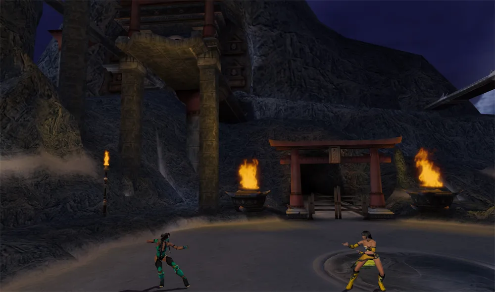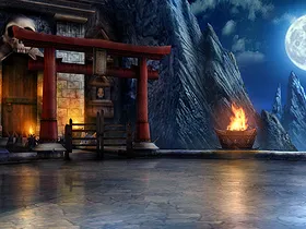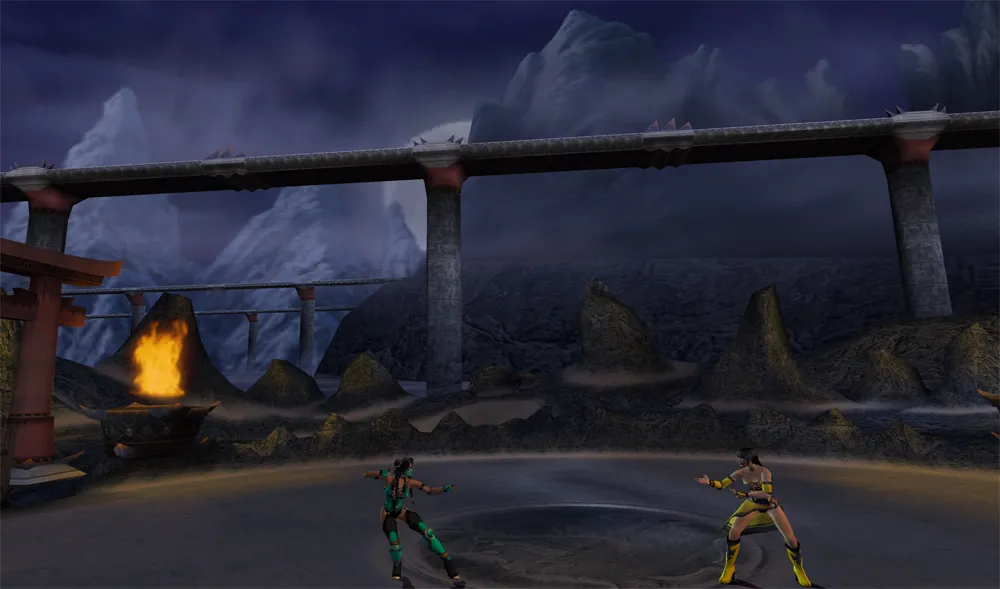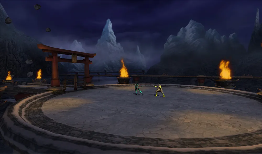 Im oberen Bereich, wo der Kampf startet fallen immer wieder Kometen vom Himmel herab. Durch den Multi-Tiered kann der Kampf in der unteren Ebene fortgesetzt werden. Im Hintergrund von der Stage sind einige ähnliche Gebilde wie The Pit zu sehen.