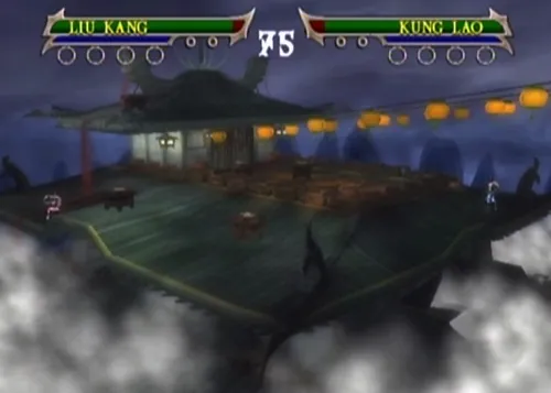 Hoch oben auf einem Gipfel kämpft ihr auf den Dächern eines alten Tempels. Zwar scheinen die Dächer ungefährlich aus, doch sollte man die Größe nicht unterschätzen. Springt man zu weit oder man wird vom Gegner geworfen, stürzt man den Tempel hinab.