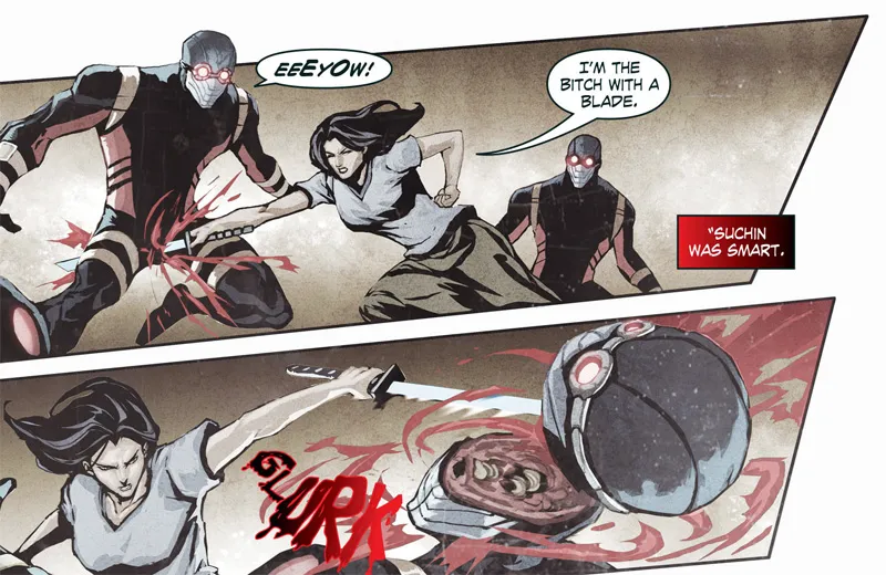 Als sie erfuhr, dass der Red Dragon clan nach ihrem Sohn suchte, handelte sie sofort. Sie schickte Takeda Takahashi fort, um ihn in Sicherheit zu bringen – wohl wissend, dass sie selbst zurückbleiben musste. Kurz darauf tauchten Attentäter in ihrer Wohnung auf.