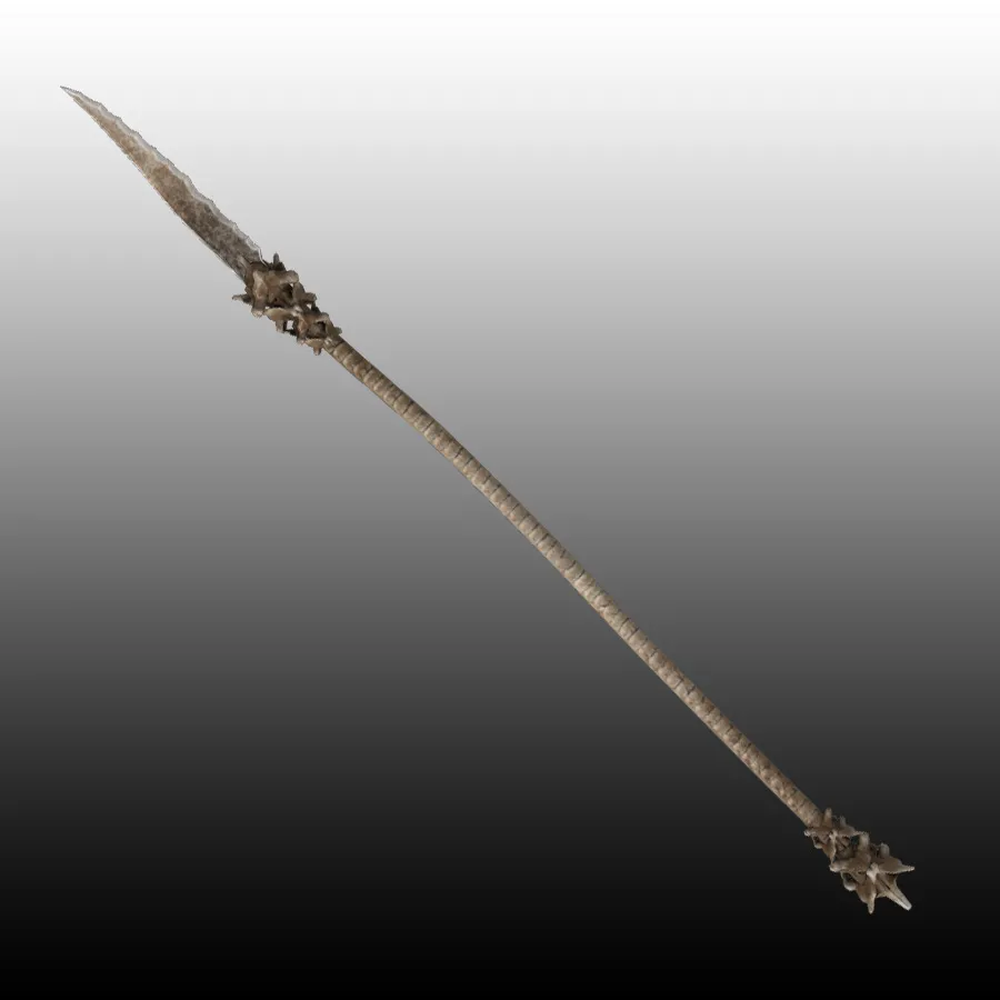 Die Bone Spear ist eine Speerwaffe die aus Knochen besteht, oft aus dem Oberschenkelknochen eines großen Tiers oder einer monströsen Kreatur gefertigt. Sie verkörpert eine primitive, aber effektive Kampfwaffe, die für Stoß- und Wurfangriffe eingesetzt wird. Trotz ihrer einfachen Bauweise ist sie durch ihre Scharfheit und Leichtigkeit äußerst gefährlich.