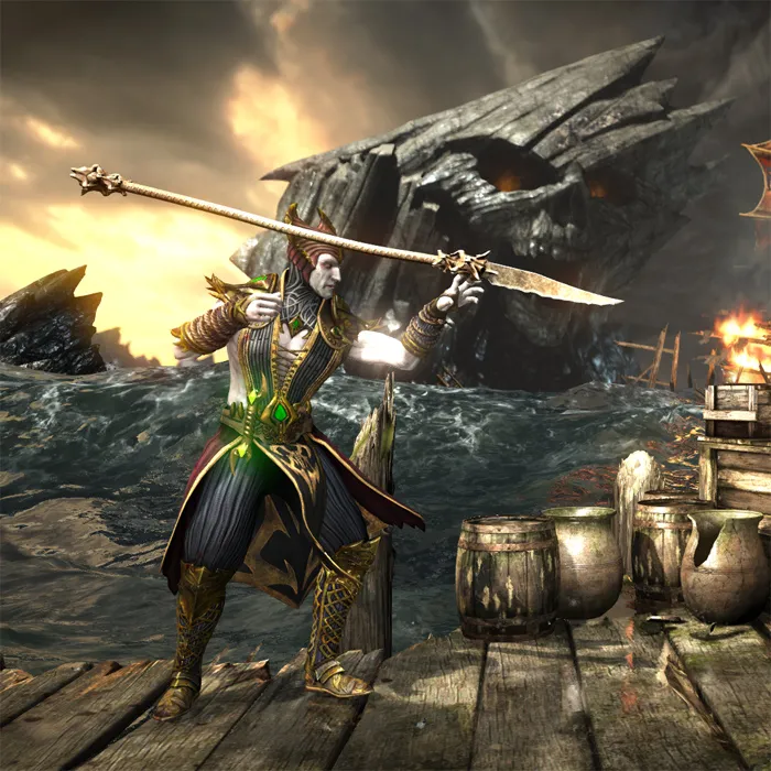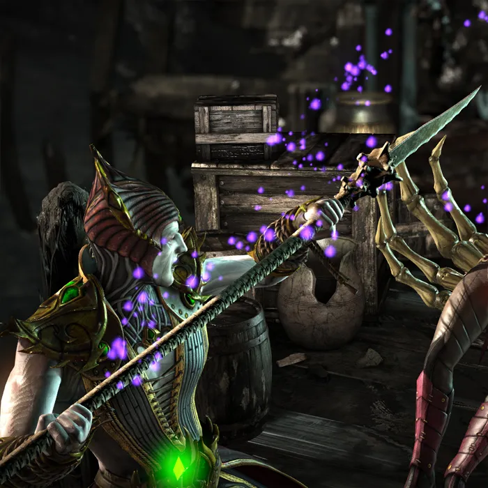 Shinnok verwendet in seinem X-Ray den Knochenspeer und rammt diesen in den Körper vom Kontrahenten.