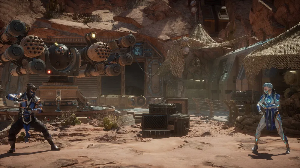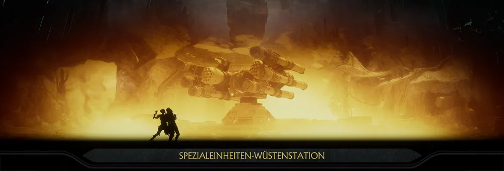 Ein Stützpunkt der Special Forces in der Wüste. 1 Daten Name: Special Forces Desert CommandSpezialeinheiten - Wüstenstation Realm: Earthrealm Stage-Fatality: Stage-Weapon: Multi-Tiered: Stage-Hazard: Death-Trap: 2 Spiele Mortal Kombat 11 3 Information Ein Stützpunkt der Special Forces in der Wüste. 4 Galerie Arenaauswahl in MK11. Baraka vs Raiden. Linker Teil der Arena. Rechter Teil der Arena. Konzept
