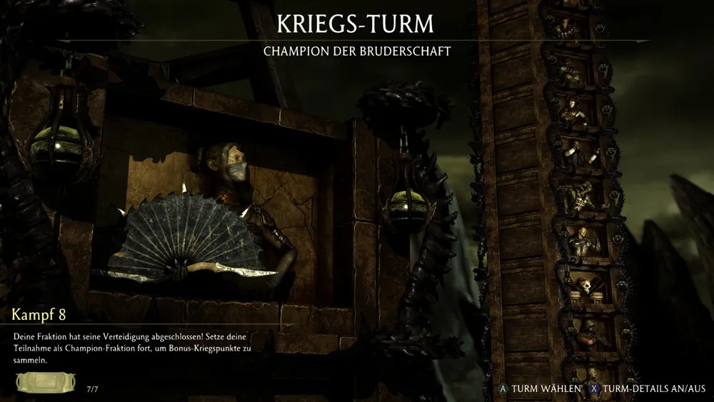Der War-Tower zählt zum Fraktionskrieg, indem du deine Fraktion verteidigen musst. Durch Siege deiner Fraktions-Mitstreiter wird das Fortschrittsmeter immer weiter gefüllt. Ist es schliesslich voll, wird dem Turm ein neuer Kampf hinzugefügt und so weiter. Mit jeden weiteren Kampf steigst du die Chance, deine Position als mächtigste Fraktion im Erdenreich zu verteidigen.