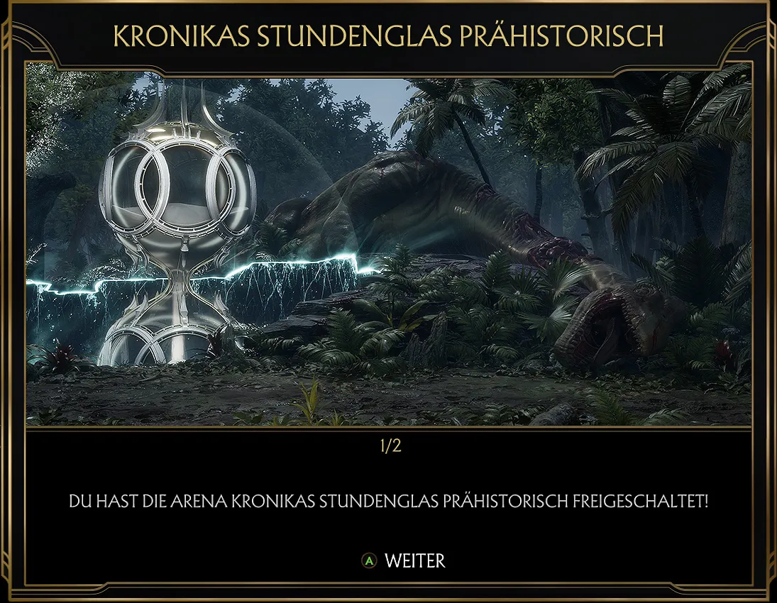 Prähistorisches Zeitalter. 1 Daten Name: Prehistoric AgePrähistorisches Zeitalter Realm: unbekannt Stage-Fatality: Stage-Weapon: Multi-Tiered: Stage-Hazard: Death-Trap: 2 Spiele Mortal Kombat 11 3 Information Durch Kronika befindet sich die Arena in der prähistorisches Zeitalter. 4 Galerie Arenaauswahl in MK11. Freigeschaltet durch den Story-Modus. Liu Kang vs Kronika im Story-Modus.