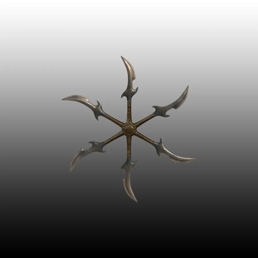 Die rotierenden Kreissägenblätter, wie sie von Kabal oder Cyrax in Mortal Kombat eingesetzt werden, haben keine direkte Entsprechung in der realen Waffenwelt. Am ehesten erinnern sie an eine fiktive, extrem scharfe Variante des Chakrams – einer traditionellen, ringförmigen Wurfwaffe aus Indien. Durch ihre hohe Schneidkraft und die spektakuläre Wirkung im Kampf ähneln sie zudem futuristischen Wurfscheiben, wie man sie aus Science-Fiction-Filmen kennt. In der Realität wären solche Waffen kaum praktikabel, im Spiel dienen sie jedoch als eindrucksvolle Mittel für brutale Spezialangriffe.